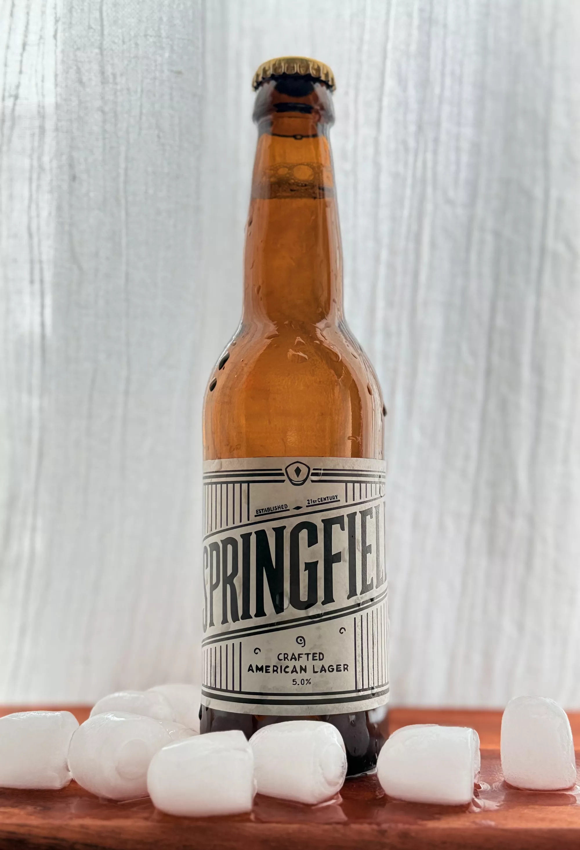 Springfield is a handcrafted American lager brewed purely with malted barley from skillful farmers, selected hops, and cristal clear water.No additives. No shortcuts. The result is a crisp, clean and tasty lager that you deserve. Brewed and bottled by our friends at Krönleins Brewery.